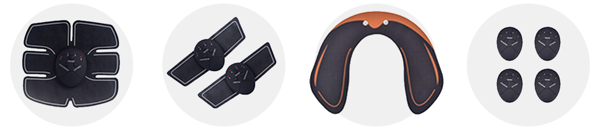 1 pad per addominali, 2 alette per braccia e gambe, 1 pad per glutei e 4 telecomandi a 4 velocità.
